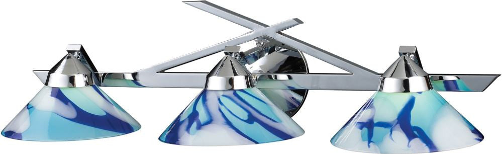 Refraction 3 Light Vanity In Polished Chrome and Carribean Glass