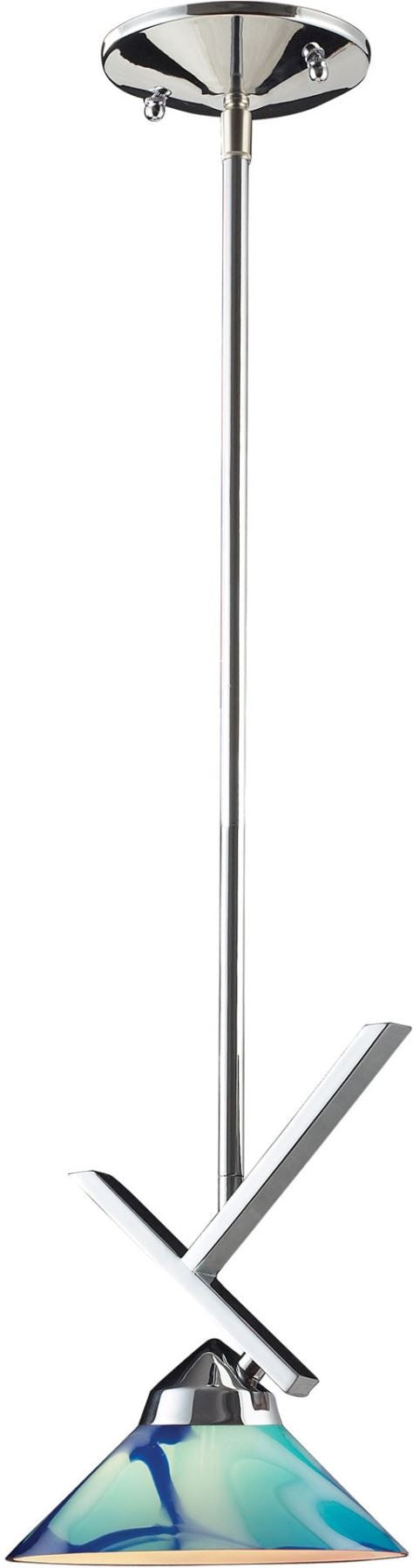 Refraction 1 Light Pendant In Polished Chrome and Caribbean Glass