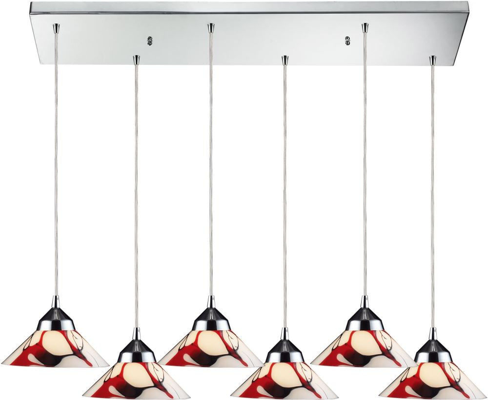 Refraction 6 Light Pendant In Polished Chrome and Creme White Glass