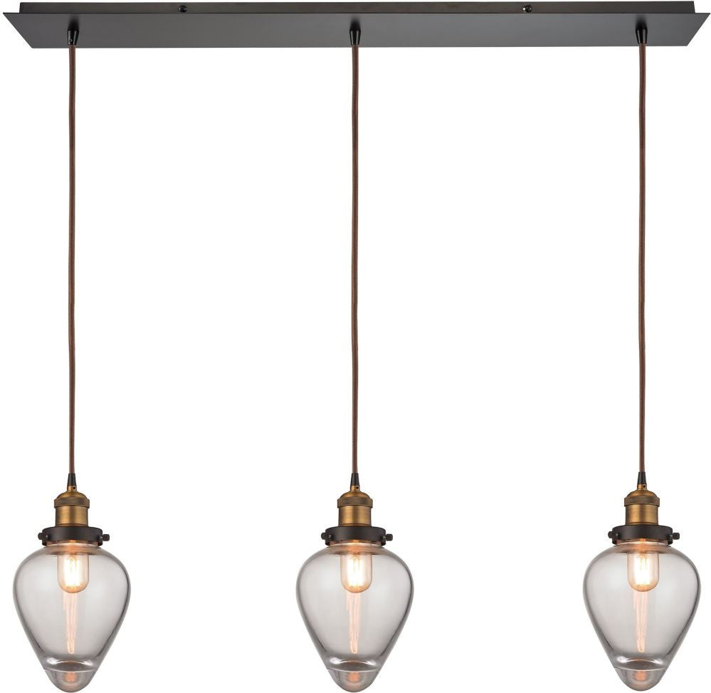 Bartram 3 Light Pendant In Oil Rubbed Bronze and Antique Brass