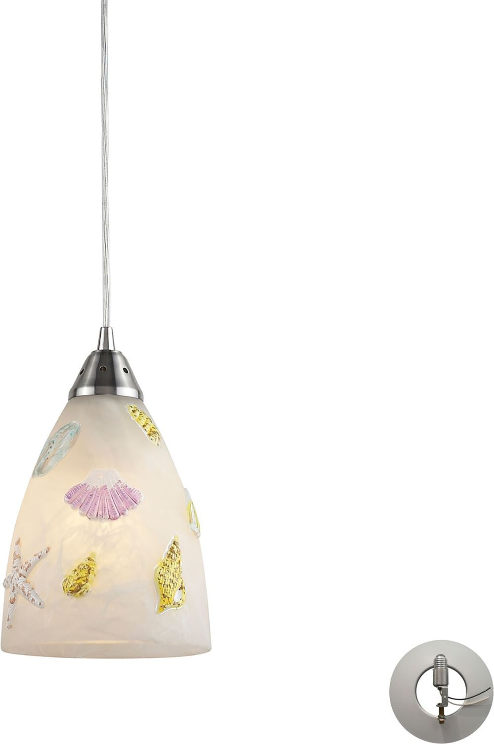 Seashore 1 Light Pendant In Satin Nickel and Hand Painted Glass - Includes Recessed Lighting Kit