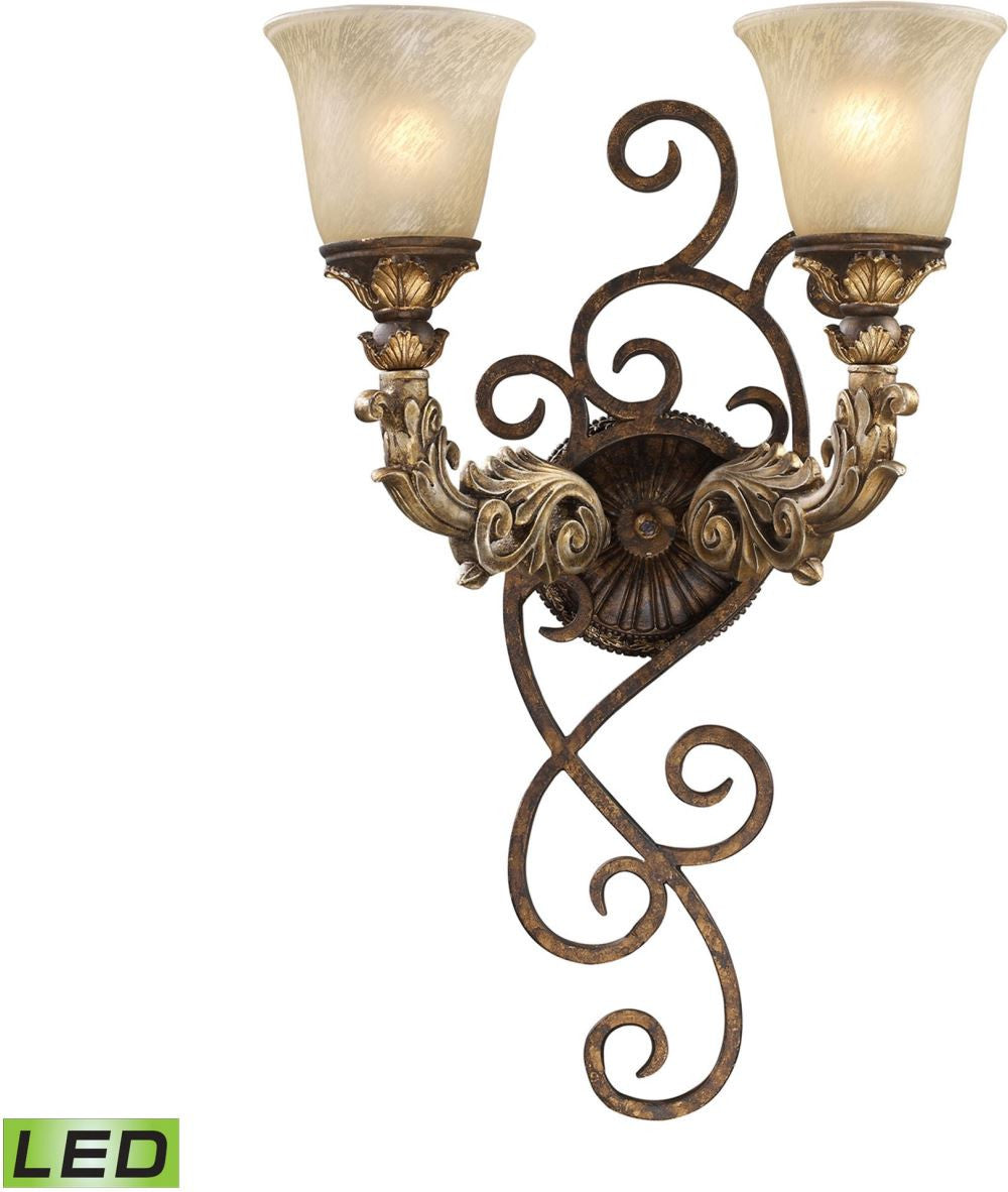 Regency 2 Light Led Wall Sconce In Burnt Bronze and Gold Leaf