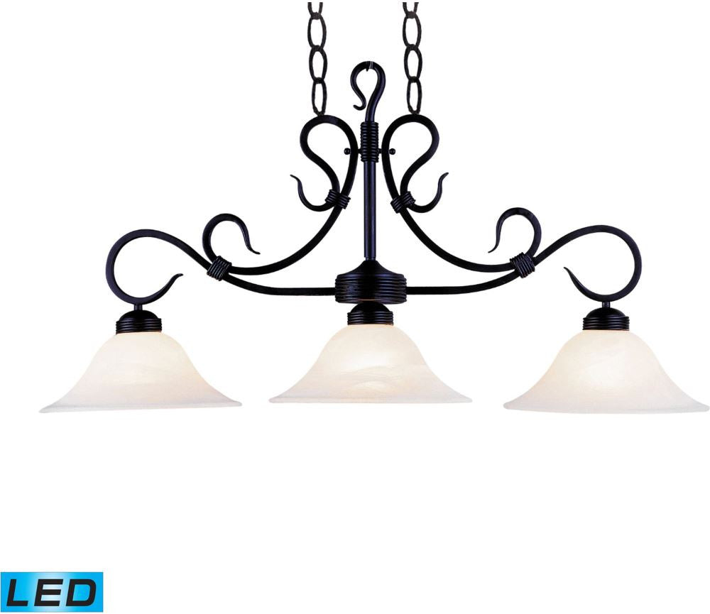 Buckingham 3 Light Led Island In Matte Black and White Faux Marble Glass