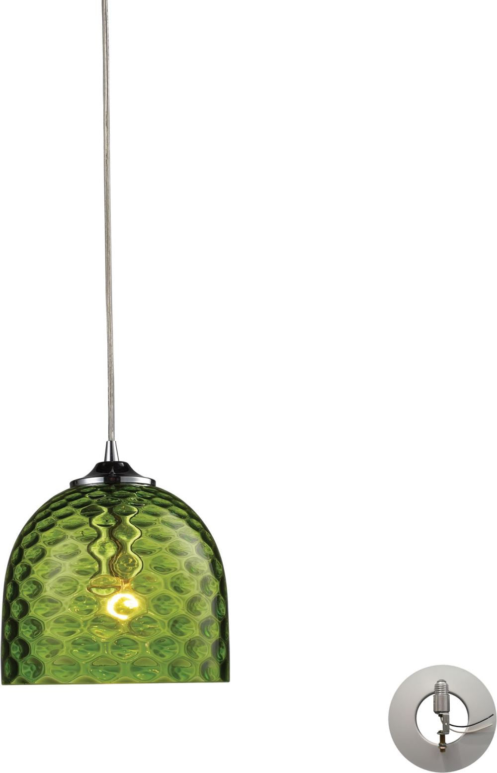 Viva 1 Light Pendant In Polished Chrome and Green Glass - Includes Recessed Lighting Kit