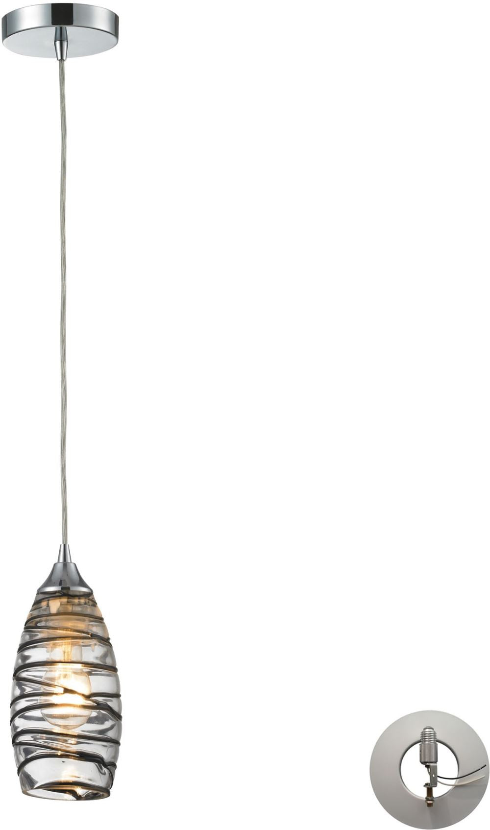 Twister 1 Light Pendant In Polished Chrome and Vine Wrap Glass With Recessed Lighting Kit