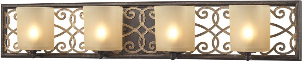 Santa Monica 4 Light Vanity In Weatbered Bronze With Gold Highlights