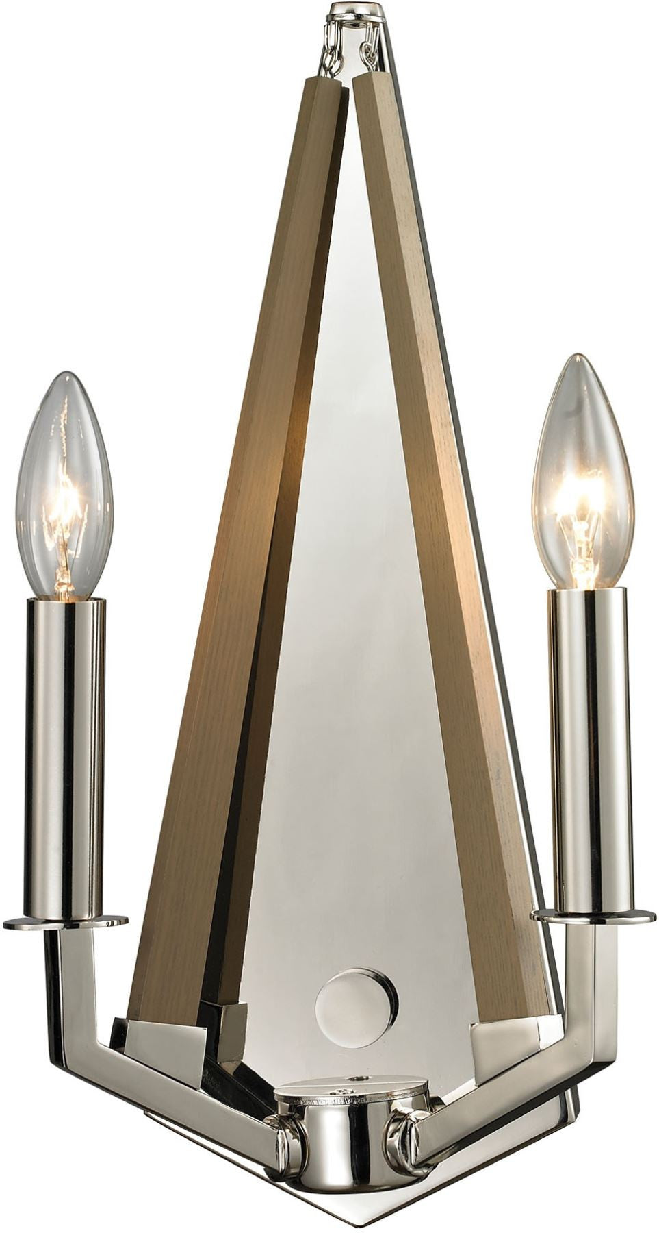 Madera 2 Light Sconce In Polished Nickel and Natural Wood