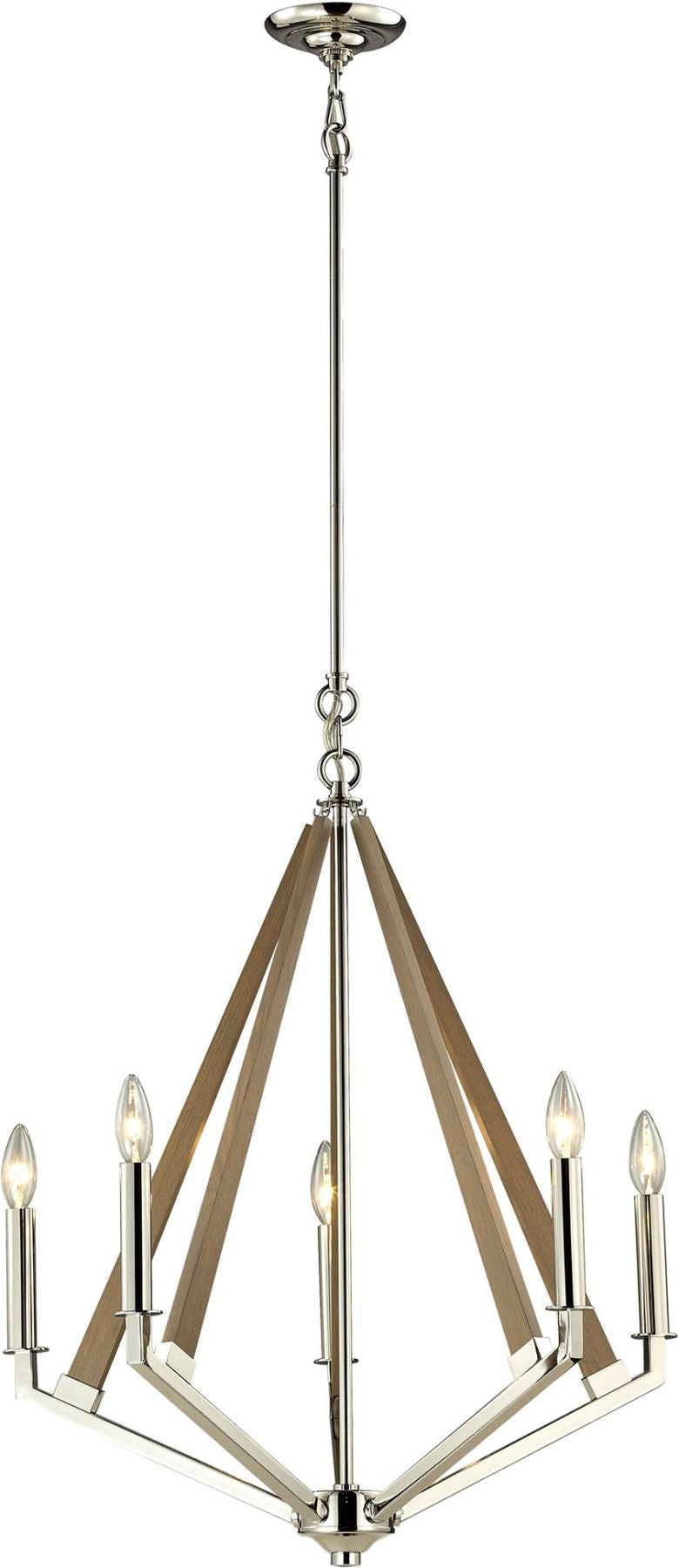 InsideAvenue Website | Madera 5 Light Chandelier In Polished Nickel and Natural Wood |