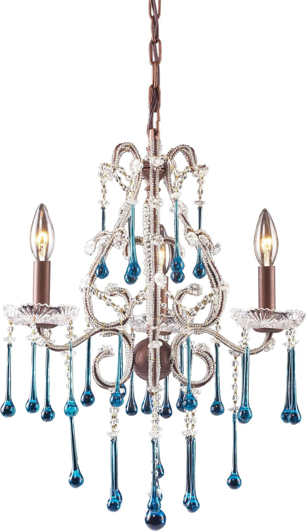 InsideAvenue Website | Opulence 3 Light Chandelier In Rust and Aqua Crystal |