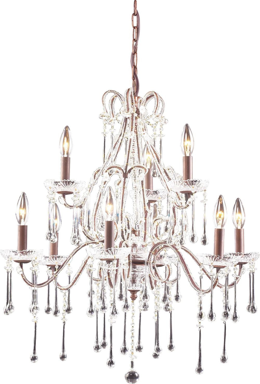 Opulence 9 Light Chandelier In Rust and Clear Crystal