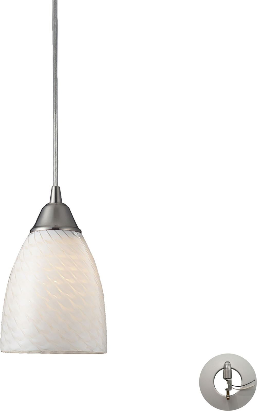 Arco Baleno 1 Light Pendant In Satin Nickel and White Swirl Glass With Adapter Kit