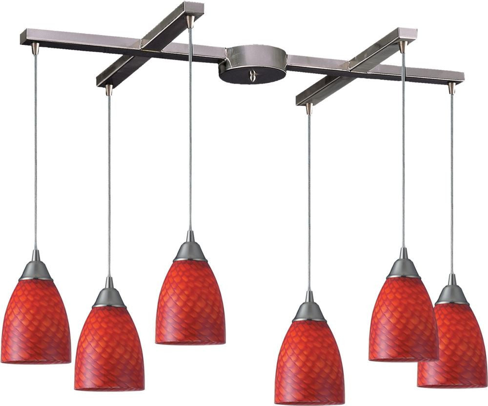 InsideAvenue Website Arco Baleno 6 Light Pendant In Satin Nickel and Scarlet Red Glass