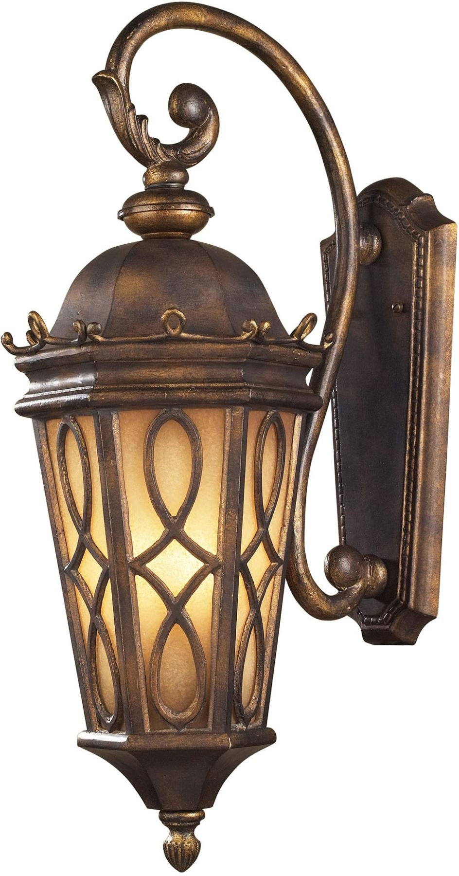 Burlington Junction 3 Light Outdoor Wall Sconce In Hazlenut Bronze and Amber Scavo Glass