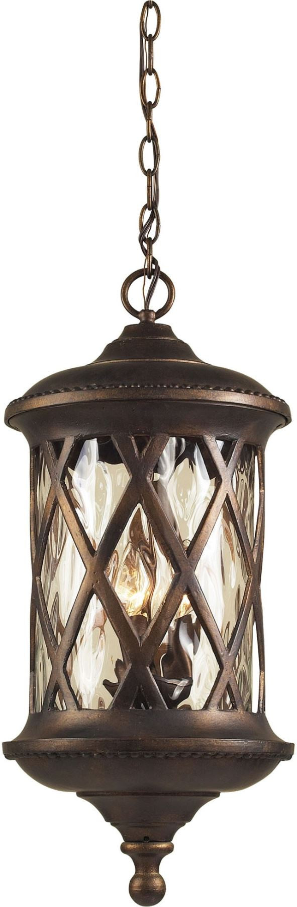 Barrington Gate 3 Light Outdoor Pendant In Hazlenut Bronze and Designer Water Glass