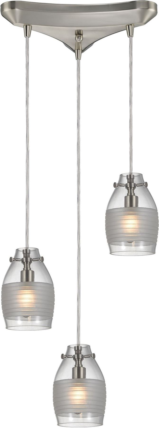 Carved Glass 3 Light Pendant In Brushed Nickel