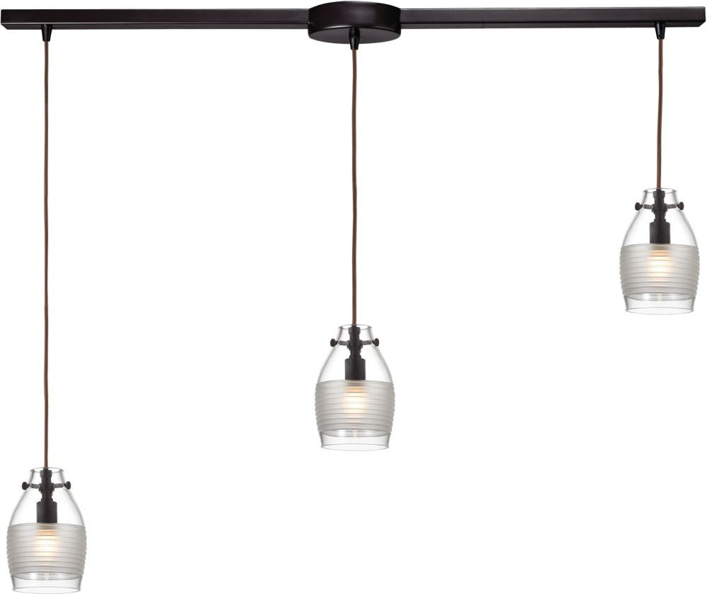 Carved Glass 3 Light Pendant In Oil Rubbed Bronze