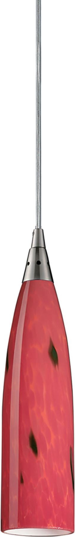 Lungo 1 Light Led Pendant In Satin Nickel and Fire Red Glass