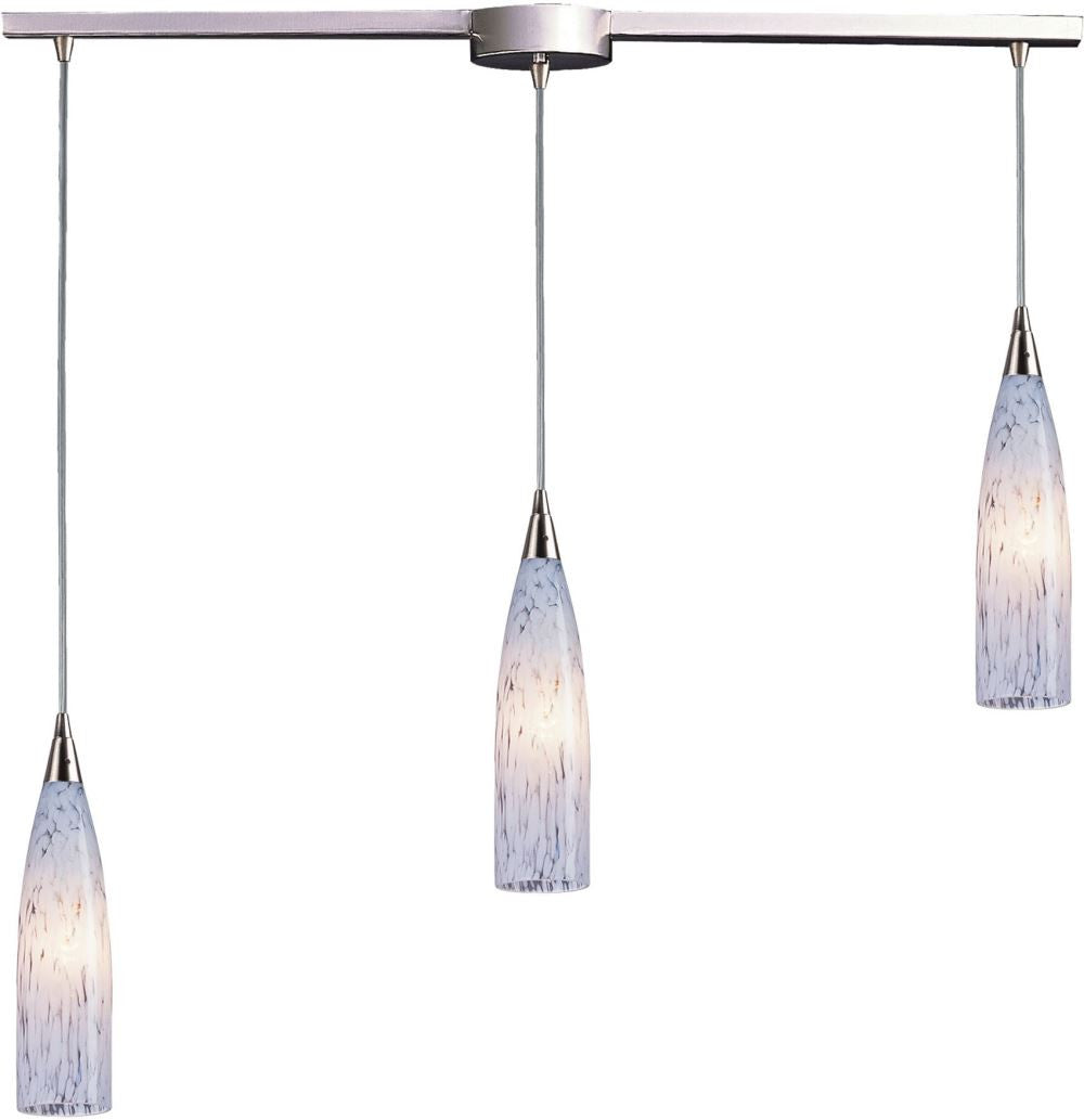 Lungo 3 Light Pendant In Satin Nickel and Snow White Glass