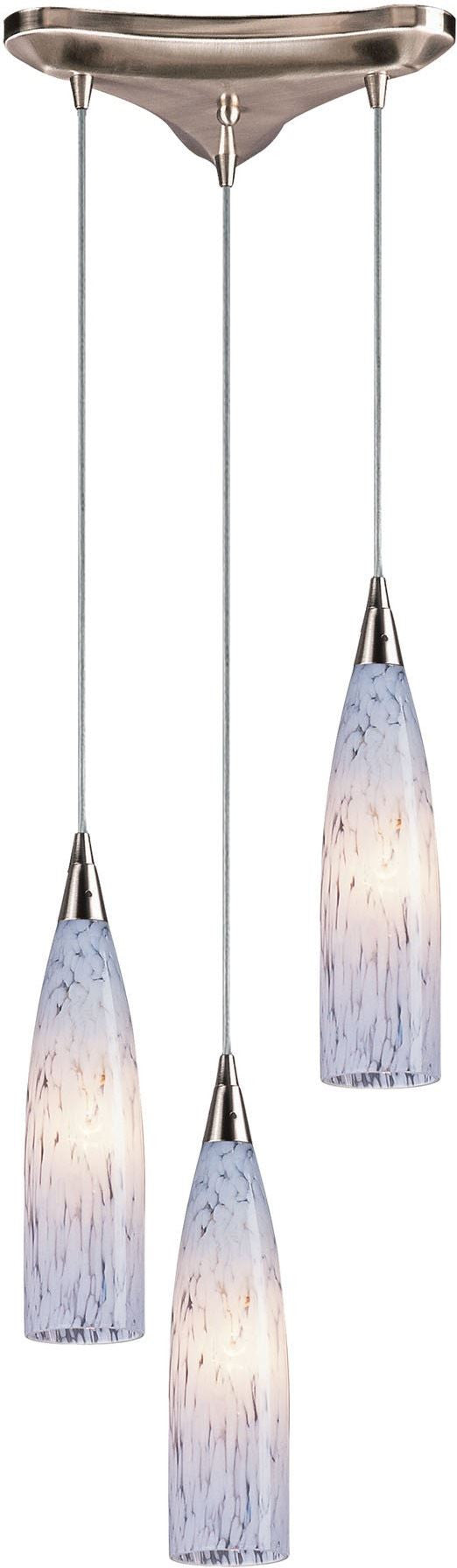 Lungo 3 Light Pendant In Satin Nickel and Snow White Glass
