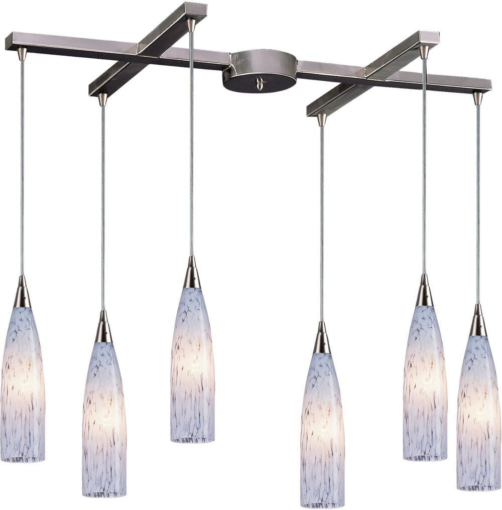 InsideAvenue Website Lungo 6 Light Pendant In Satin Nickel and Snow White Glass