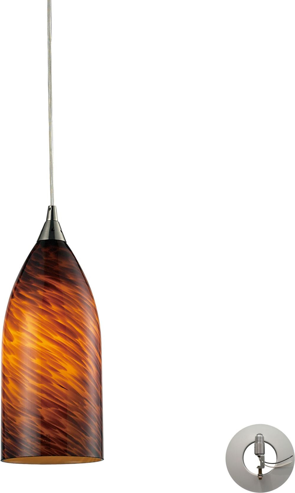 Verona 1 Light Pendant In Satin Nickel and Espresso Glass - Includes Recessed Lighting Kit