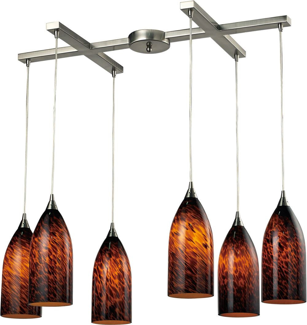 Verona 6 Light Pendant In Satin Nickel and Espresso Glass