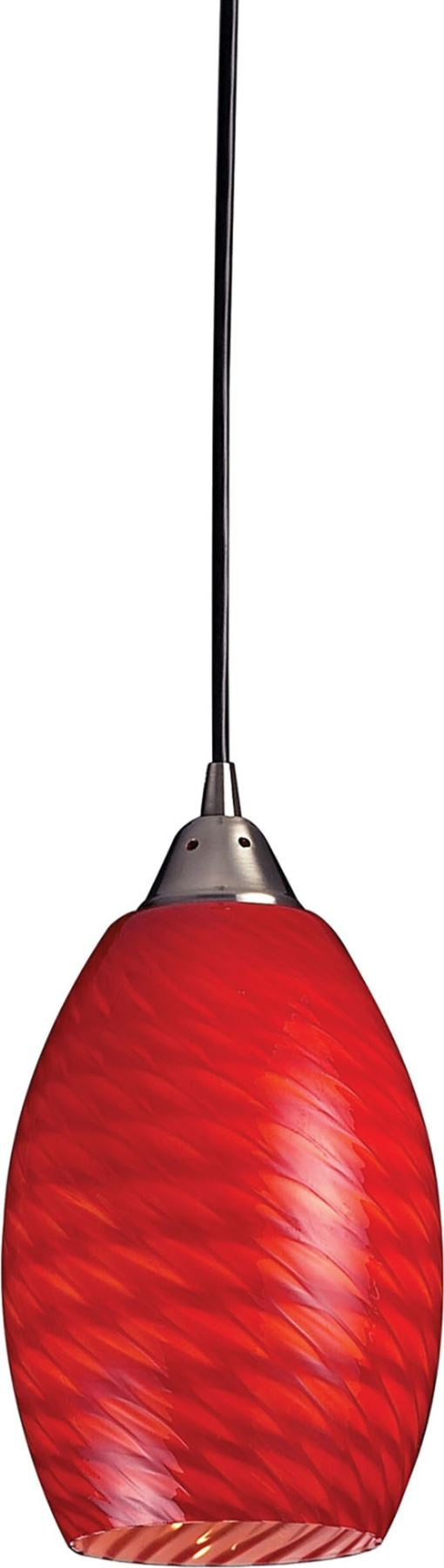 Mulinello 1 Light Led Pendant In Satin Nickel and Scarlet Red Glass