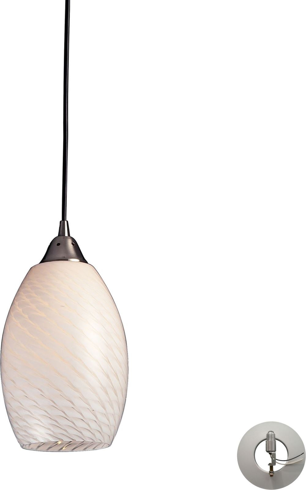Mulinello 1 Light Pendant In Satin Nickel and White Swirl Glass - Includes Recessed Lighting Kit
