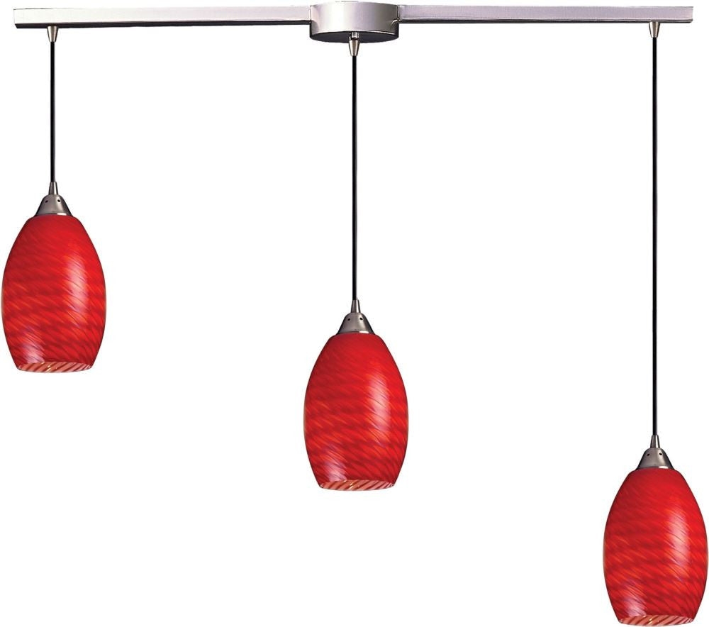 InsideAvenue Website | Mulinello 3 Light Pendant In Satin Nickel and Scarlet Red Glass |