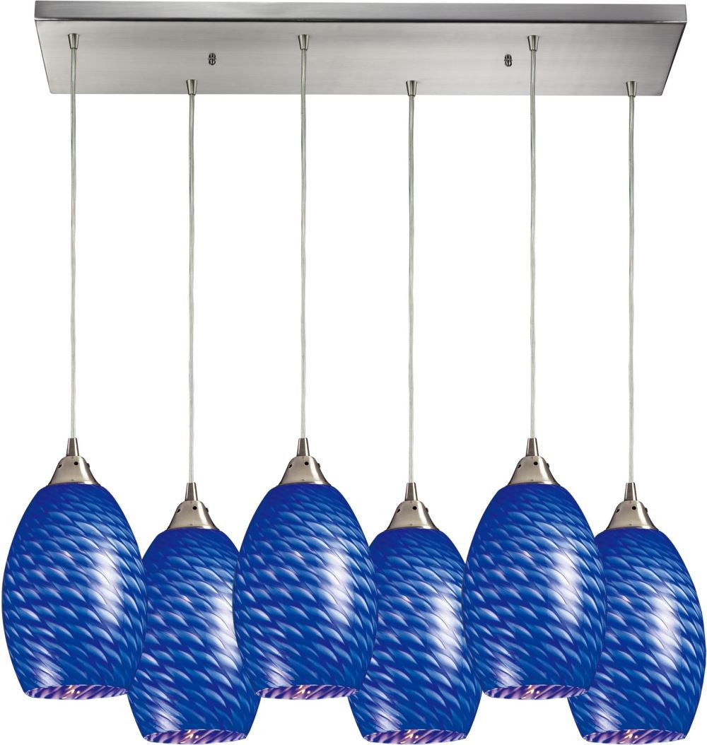 InsideAvenue Website Mulinello 6 Light Pendant In Satin Nickel and Sapphire Glass