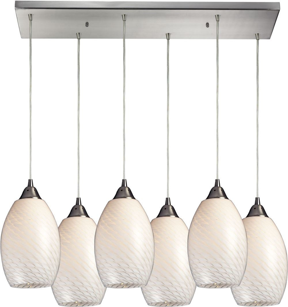 Mulinello 6 Light Pendant In Satin Nickel and White Swirl Glass