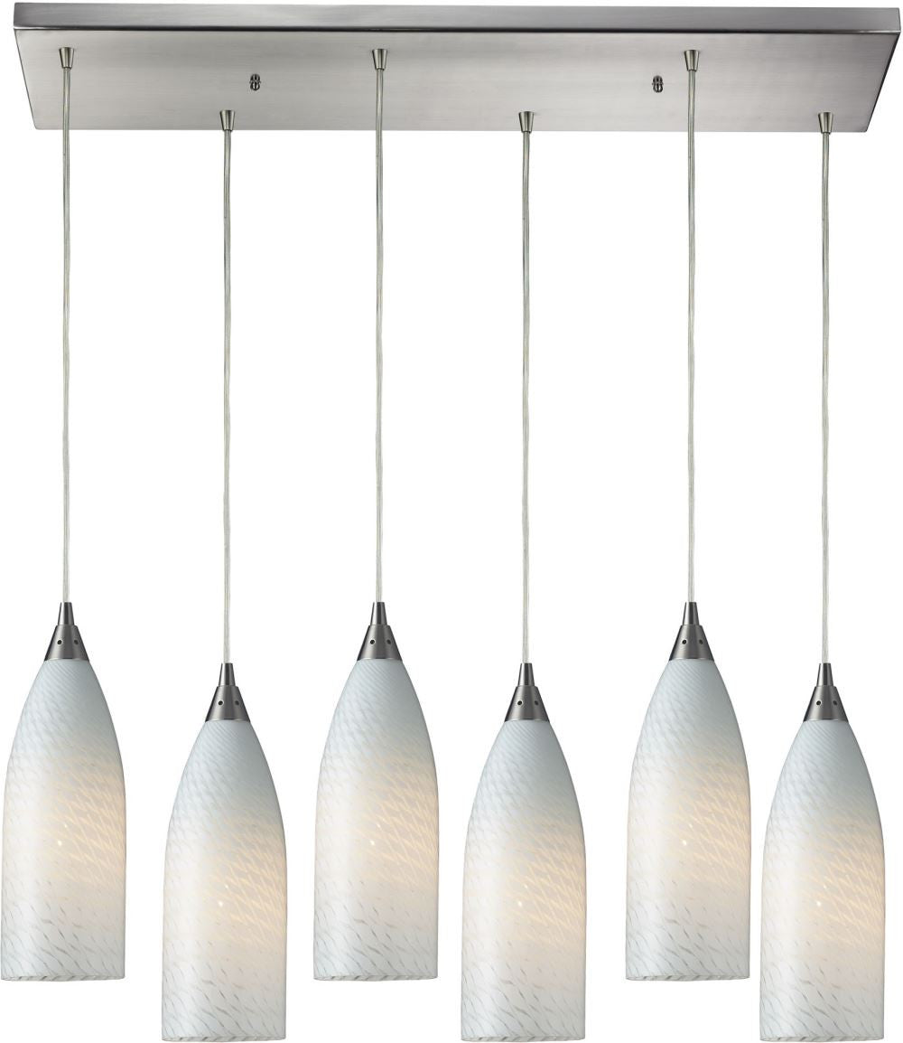 InsideAvenue Website | Cilindro 6 Light Pendant In Satin Nickel and White Swirl Glass |