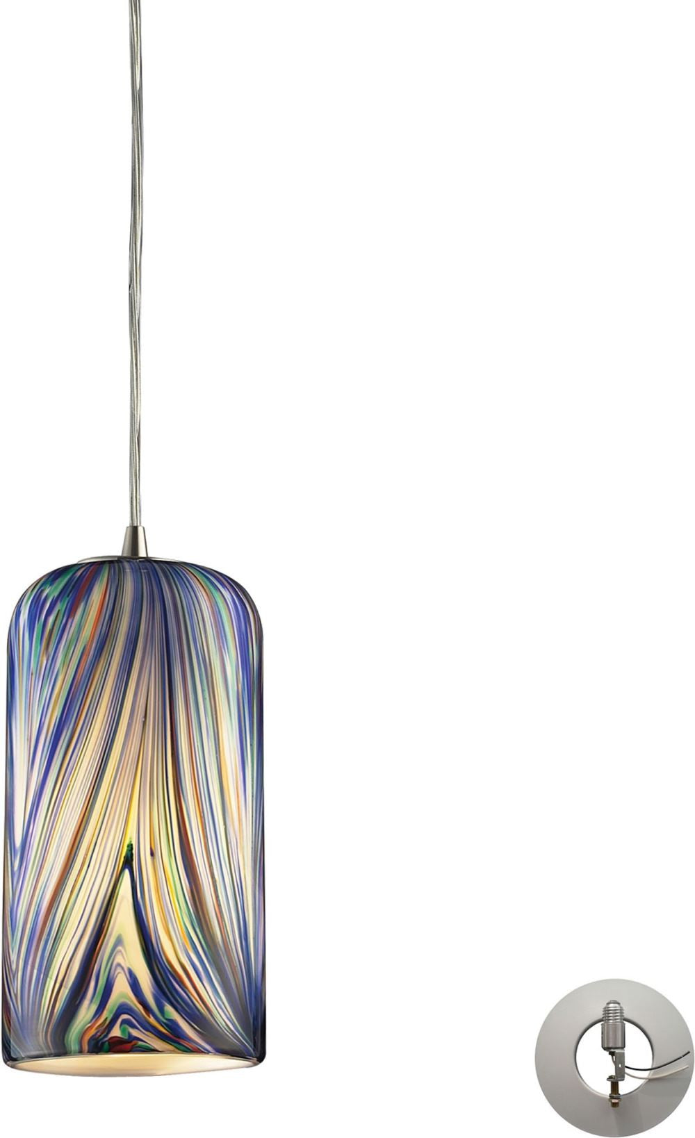 Molten 1 Light Pendant In Satin Nickel and Molten Ocean Glass - Includes Recessed Lighting Kit