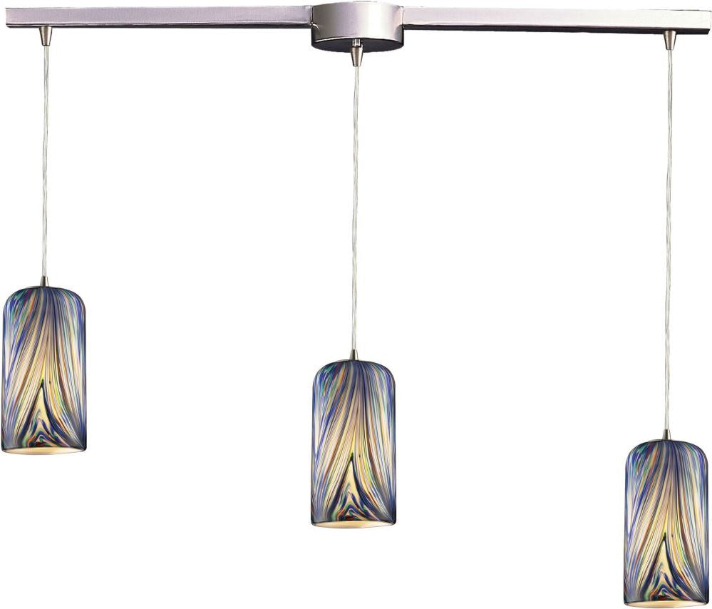 Molten 3 Light Pendant In Satin Nickel and Molten Ocean Glass