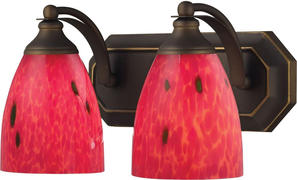 Bath and Spa 2 Light Vanity In Aged Bronze and Fire Red Glass