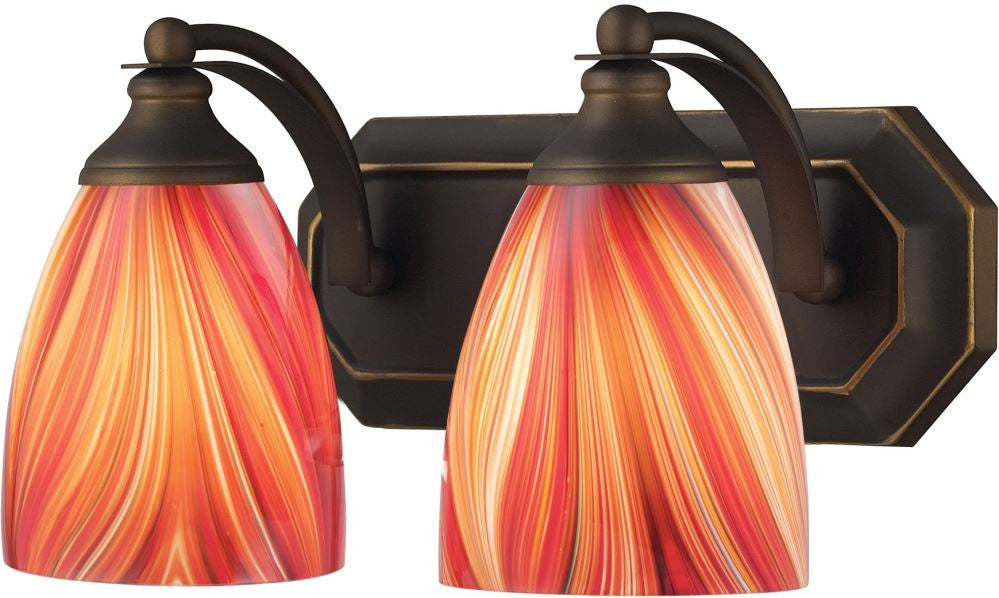Bath and Spa 2 Light Vanity In Aged Bronze and Multi Glass