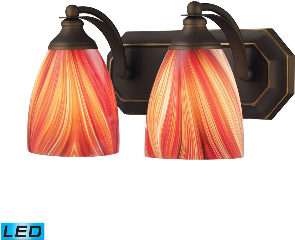 Bath and Spa 2 Light Led Vanity In Aged Bronze and Multi Glass