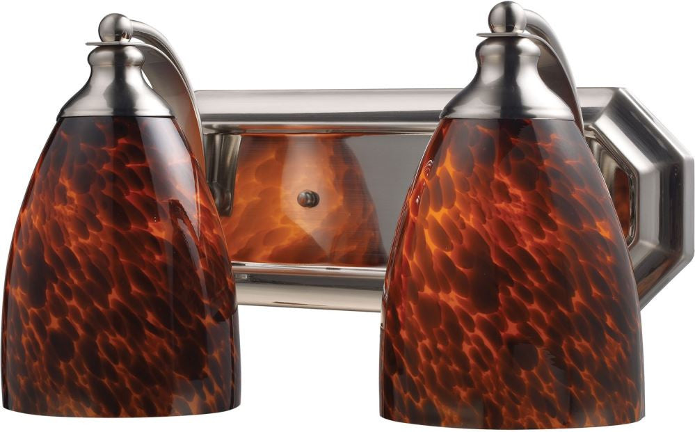 Bath and Spa 2 Light Vanity In Satin Nickel and Espresso Glass