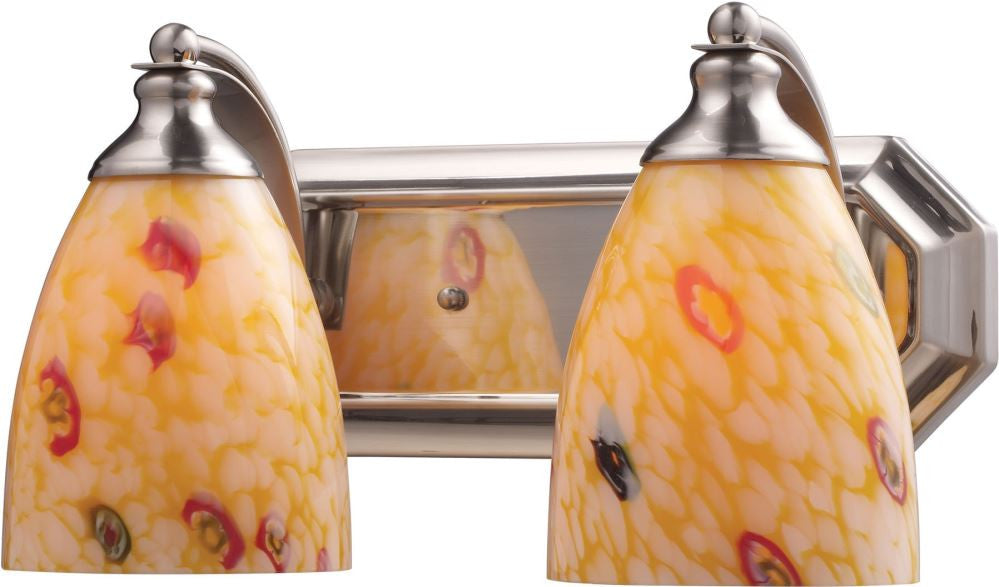 Bath and Spa 2 Light Vanity In Satin Nickel and Yellow Glass