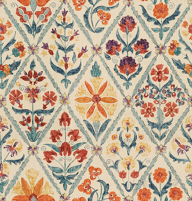 InsideFabric Website | Lee Jofa Fabric 2010120.125 Susani Trellis Orange/Blue |