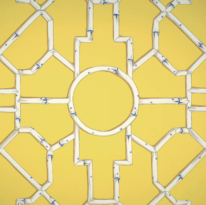 InsideWallpaper Website | Scalamandre WP81630-001 Baldwin Bamboo Cream & Blue On Yellow Wallcovering |