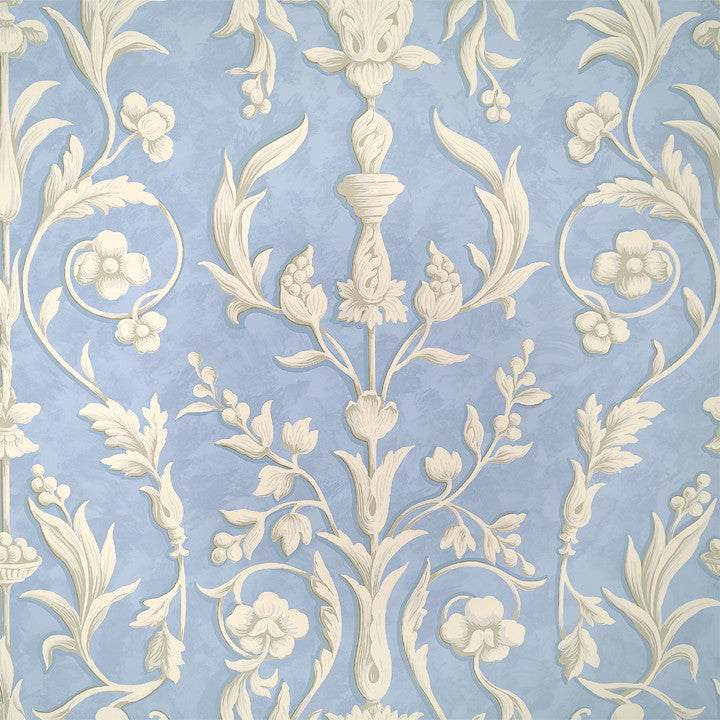 Scalamandre Wallpaper WP81644-004 Arabesque Plaster White On Nordic Blue Fresco