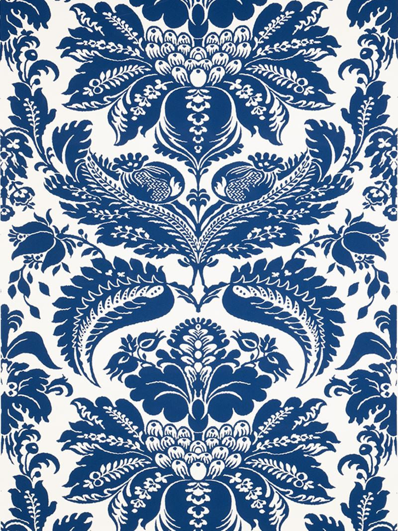 Categories $51-100, Blue/Light Blue, Classic Wallpapers, Damask, Print, White