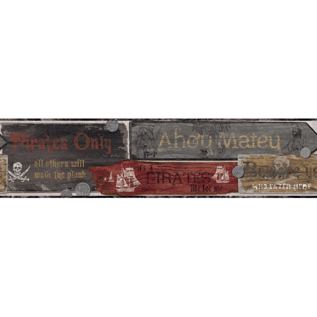 InsideWallpaper Website | York ZB3113BD Boys Will Be Boys Pirate Sign Border Wallcovering |