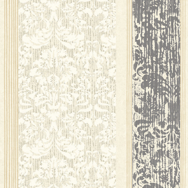InsideWallpaper Website | York AB2187 Black & White Damask Stripe Wallpaper Wallcovering |