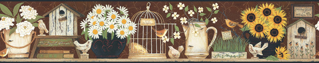 Design | Country, Garden, Shelf, Sunflowers, Daisies, Bird, Birdcage |