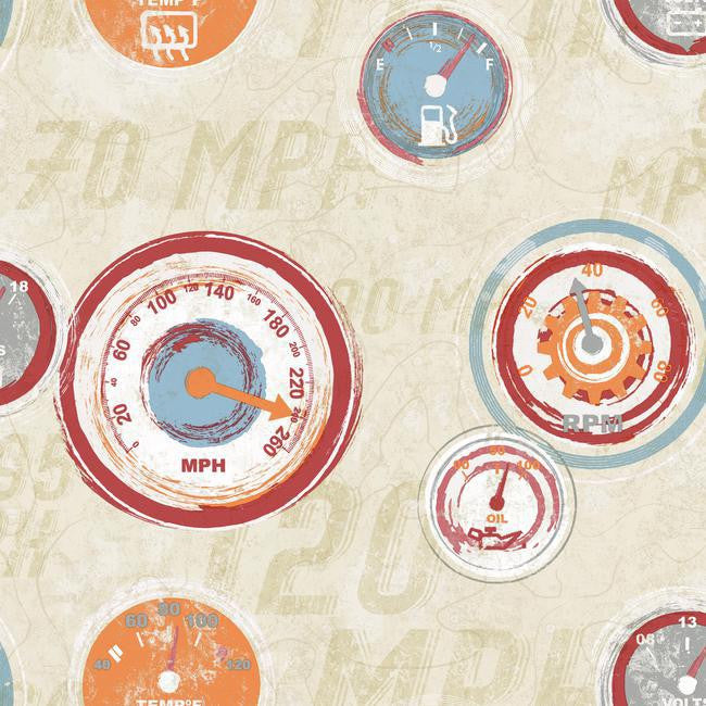 InsideWallpaper Website | York KS2326 Cool Kids Race Car Gauges Wallpaper Wallcovering |