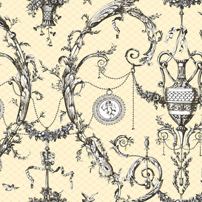 InsideWallpaper Website York AH4756 Black & White Neoclassic Urn Toile Wallpaper Wallcovering