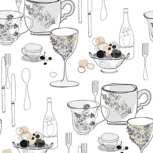 InsideWallpaper Website | York KB8575 Bistro 750 Graphic Tableware Wallpaper Wallcovering |