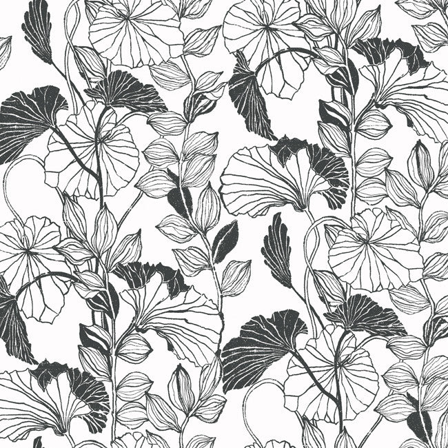 InsideWallpaper Website | York FP2660 Black & White Leaf Outline Wallpaper Wallcovering |